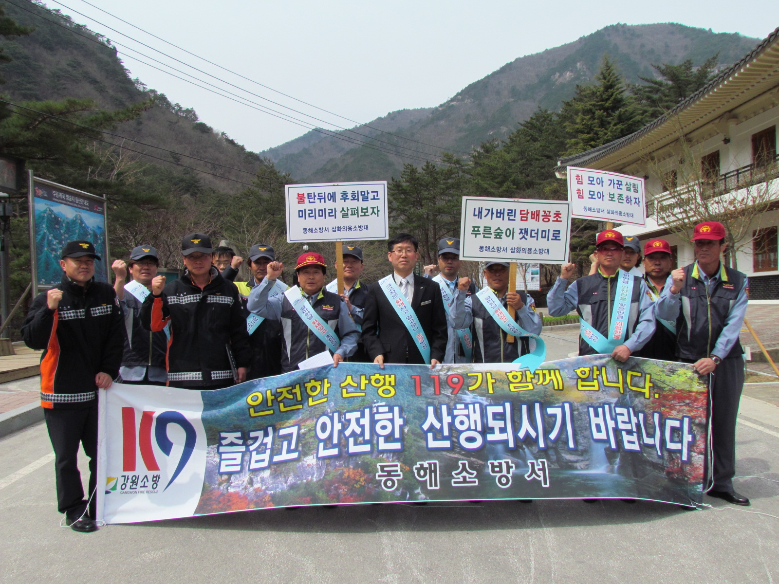 현재 동해시에 건조주의보가 계속됨에 따라 산불 등 화재발생 위험이 높아져 등산객들에 대한 경각심을 고취시키기 위하여 등산로 입구에서부터 화재예방 리플렛과 홍보물품 등을 배부하며 산불예방 홍보활동을 펼쳤다.