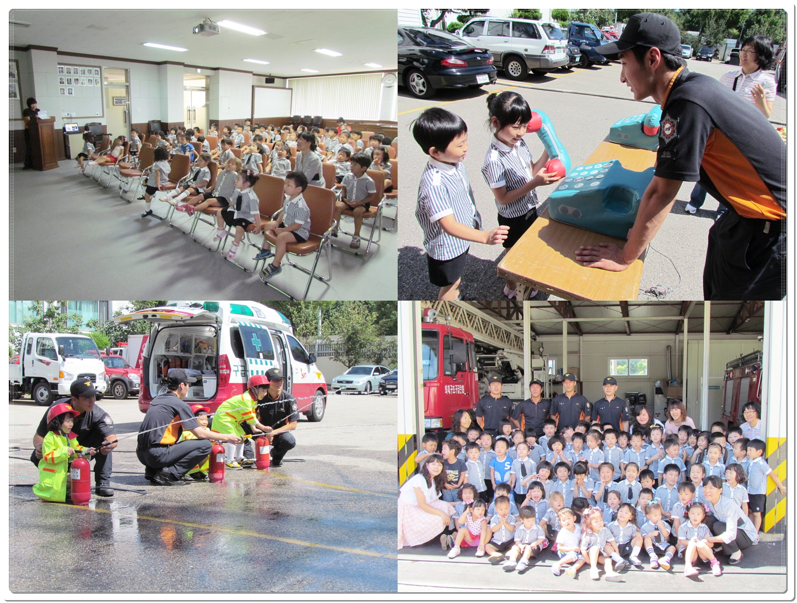 소방차에 대한 소방관아저씨들의 설명을 듣고, 119신고요령도 재밌게 배울수 있어 아이들이 재밌게 소방안전교육을 받았습니다.