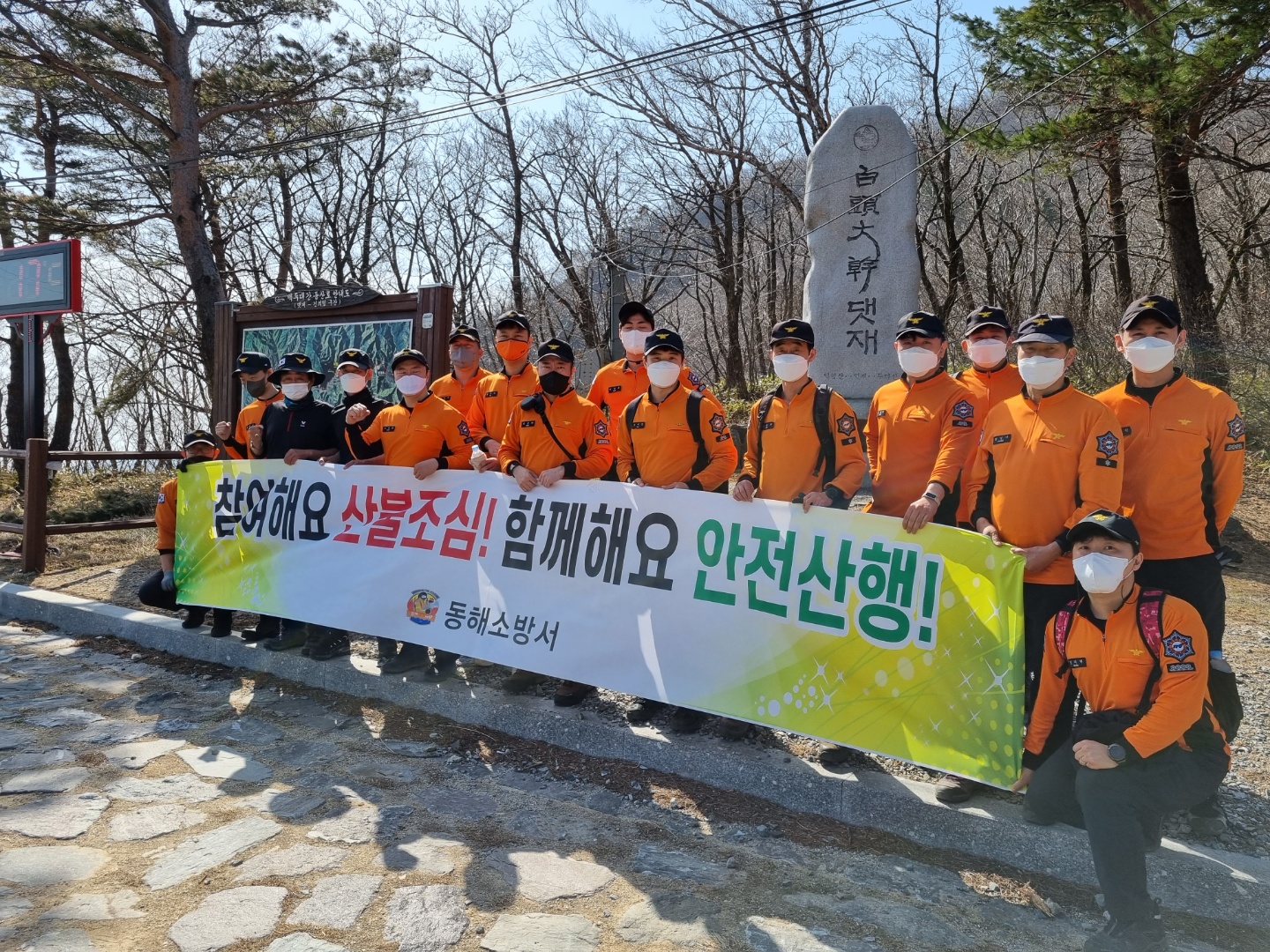 이번 특별산악구조훈련에는 소방 10명, 산악전문의소대 10명 등이 참가 동해시 명소를 찾는 등산객의 산악사고 대비 신속한 대응 및 인명구조 능력을 배양하고, 등산로 상 위험지역 확인 및 안전표지판 점검 등을 중점 실시하였다.