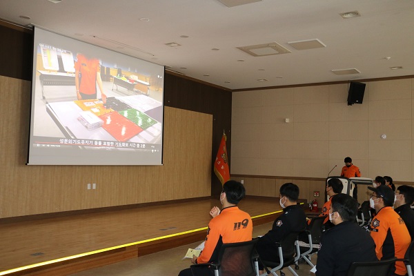 소방장 강태순 외 3명이 교관으로 구급대원 28명을 대상으로 다수사상자 재난현장 도상훈련 키트 실습, 중증도 분류 실습 등의 장비 이용해 임시응급의료소 운영과 다수사상자 분류ㆍ처치ㆍ이송 등 교육했다.