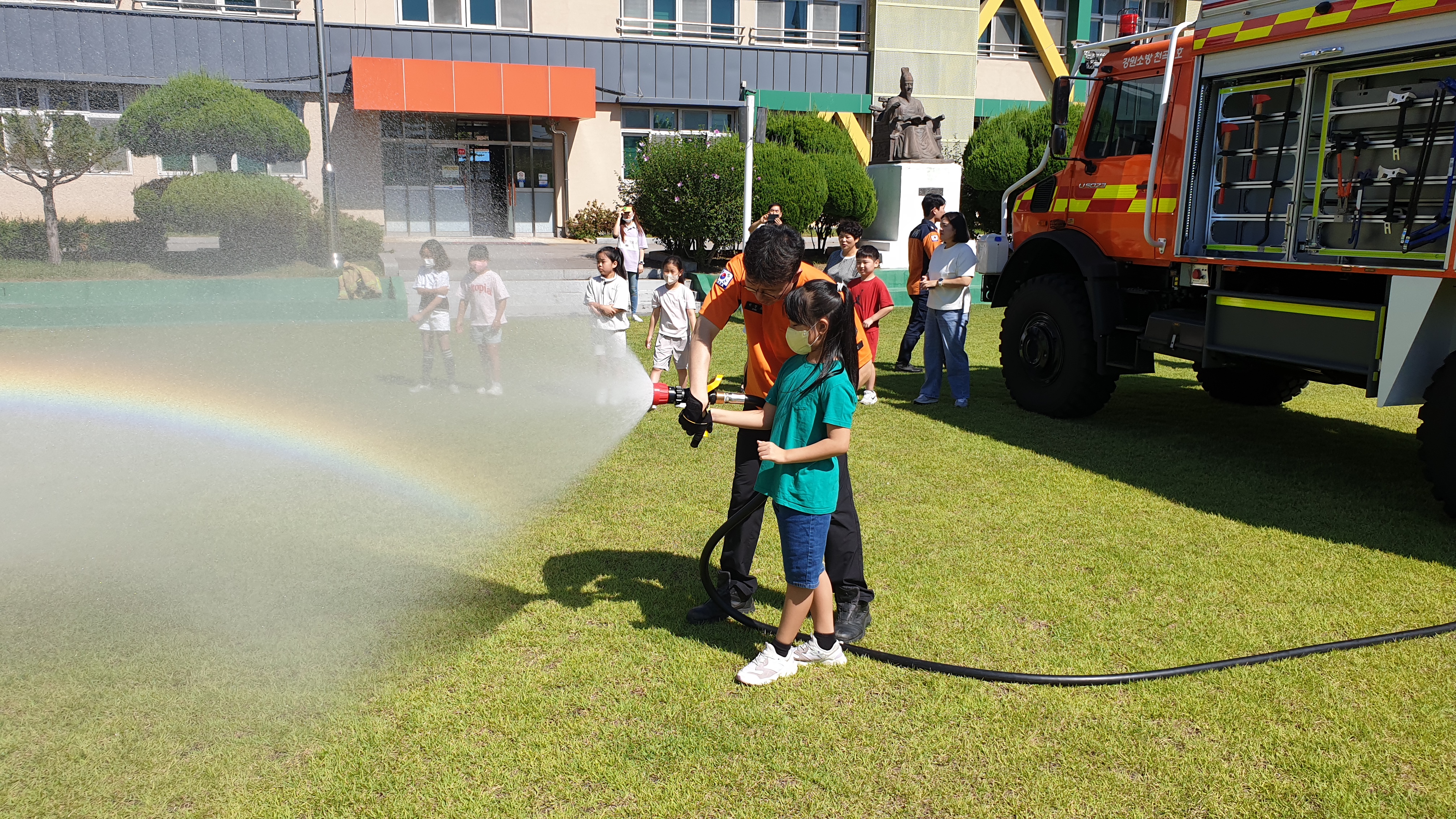 주요내용으로는 ▲화재안전교육(펌프차 탑승, 주수 체험) ▲응급처치교육(심폐소생술, 생활응급처치) ▲생활안전교육(아파트 화재 행동요령) 등이며, 송정초등학교 학생과 교직원 약 70여명이 참여했다.