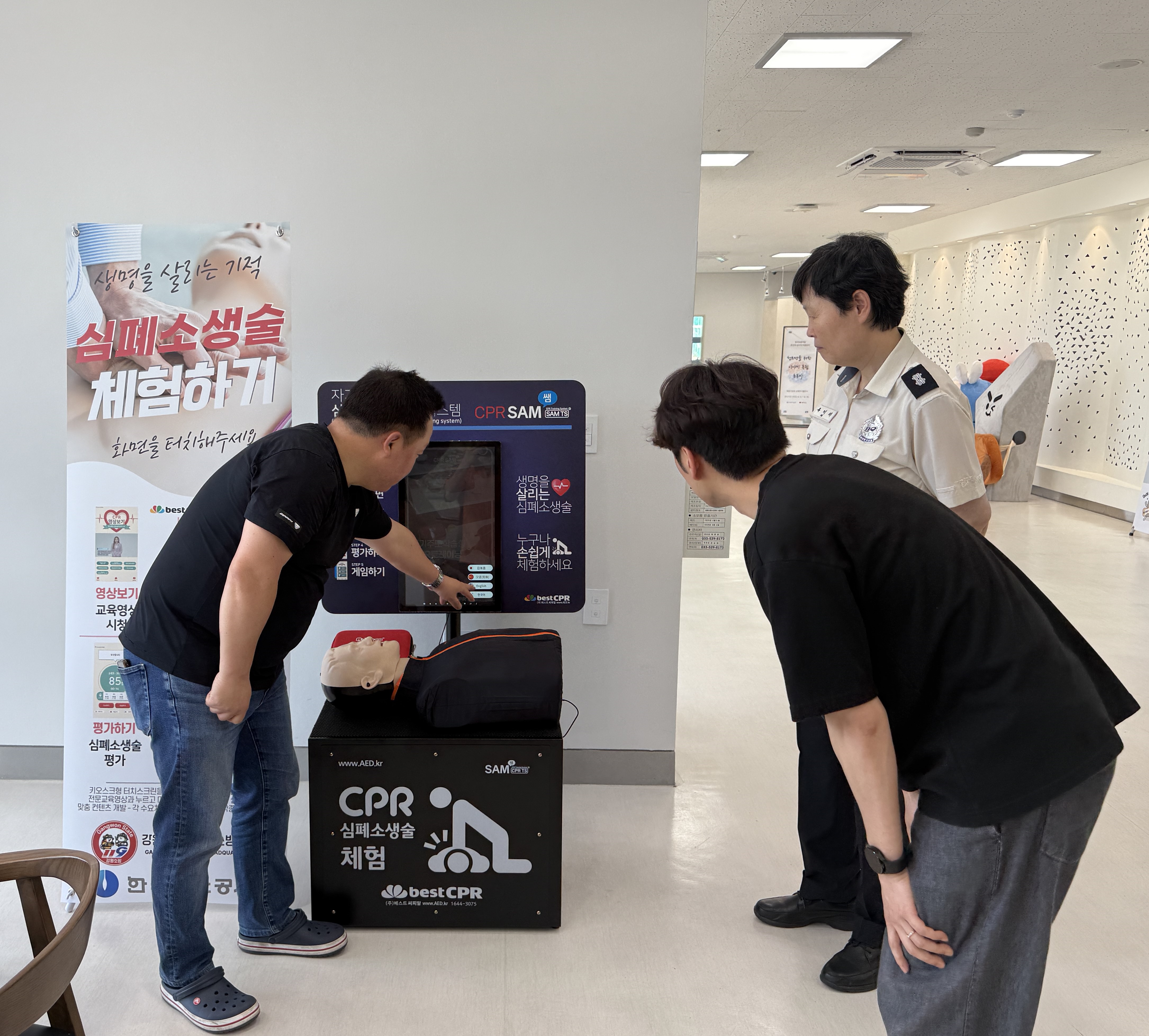 설치된 CPR 트레이너는 키오스크와 실습을 위한 마네킹이 결합된 방식으로 심폐소생술과 자동심장충격기(AED) 사용법을 자율적으로 익힐 수 있도록 구성돼 있다.