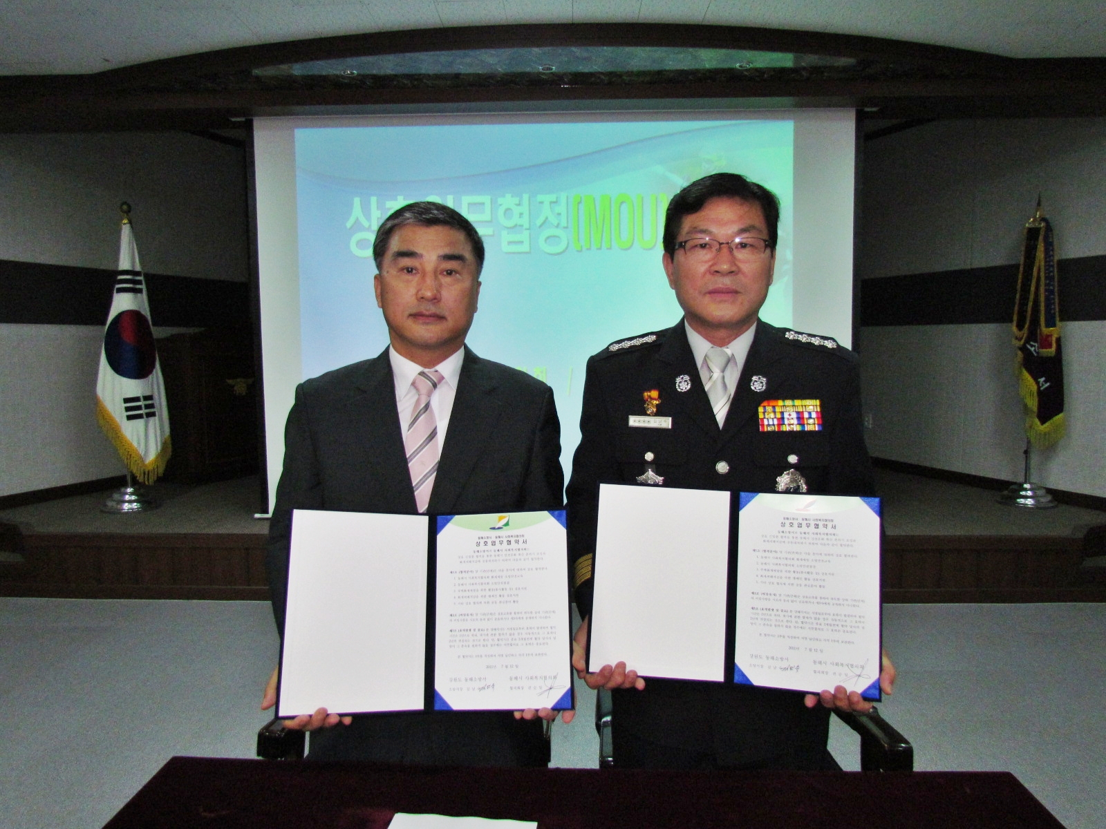 동해소방서(서장 김남숙)와 동해시사회복지협의회(회장 권순일)이 12일 오전 10시 본서 대회의실에서 상호업무협정(MOU)을 체결하였다.