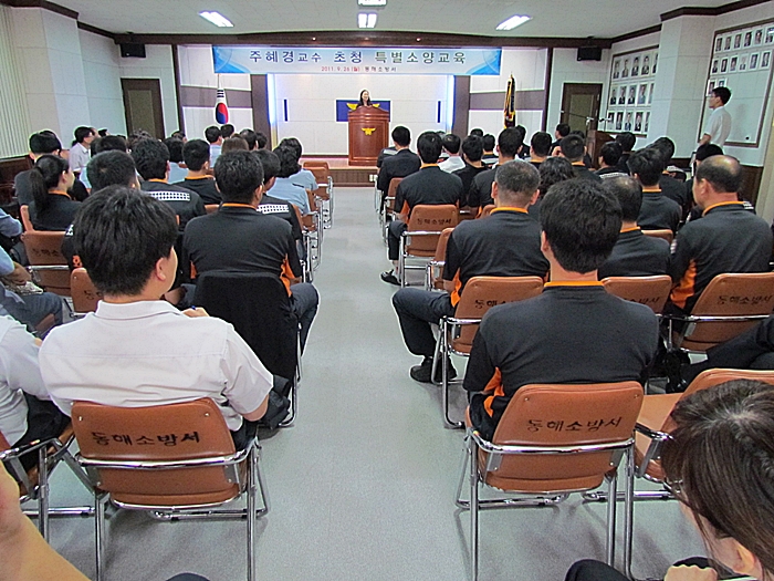 동해소방서는 직원 교양증진을 위하여 지속적으로 외래강사 초빙교육을 실시할 예정입니다.