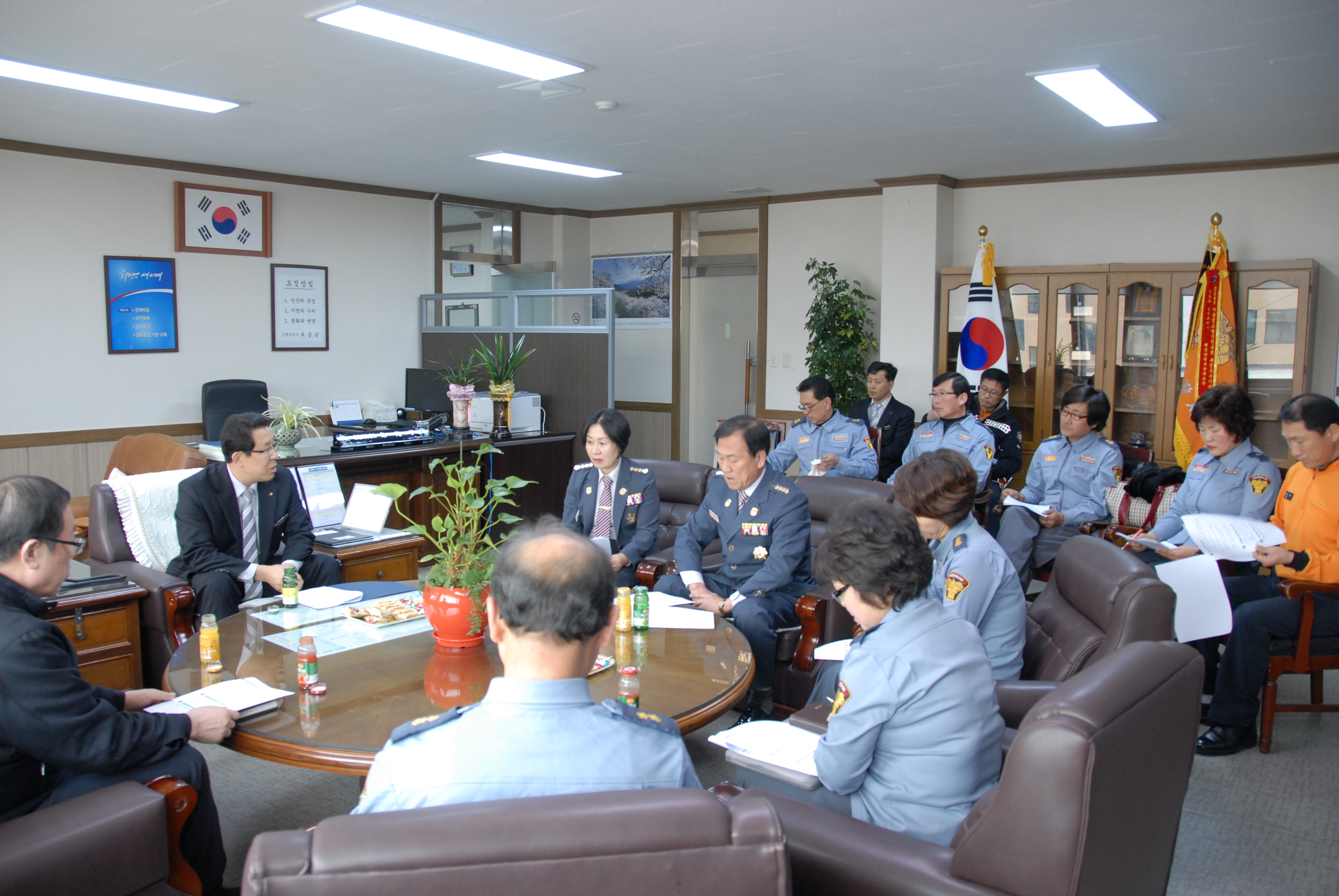 동해소방서(서장 주항중)는 3. 12(수) 오후 동해소방서장 집무실에서 의용소방대장 및 의용소방대원과 2014년도 의용소방대 운영활성화를 위한 간담회 개최하였고, 갑오년 한해에도 지금까지 보여준 열정적인 각종 예방활동과 어려운 이웃을 위한 봉사활동도 확대해 줄 것을 당부하였습니다.