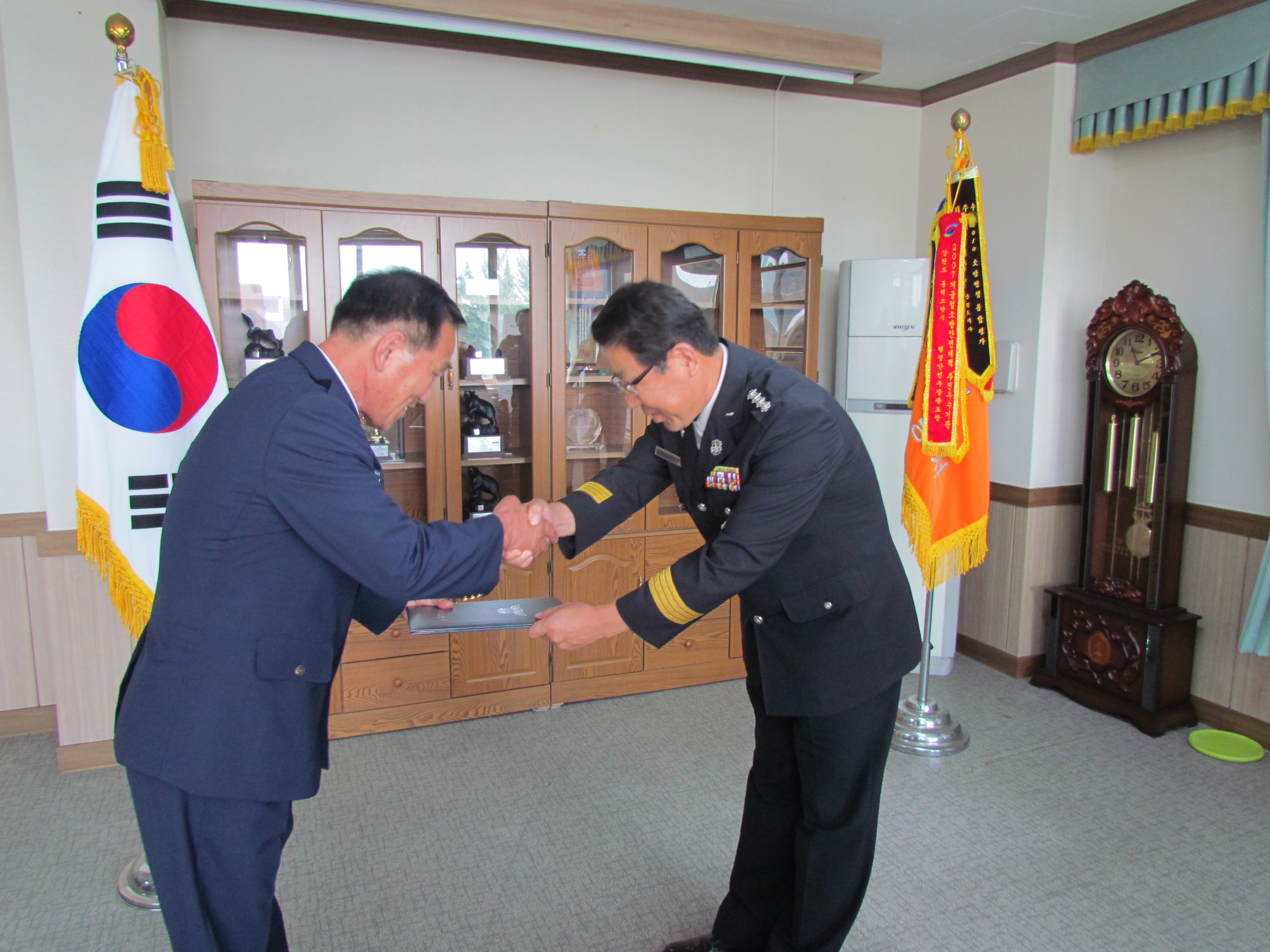 동해소방서(서장 주항중)는 11일(목) 오전11시 서장실에서 전임자의 임기가 만료됨에 따라 현 묵호의용소방대장(대장 전형표, 65세)을 동해시의용소방대연합회 신임연합회장으로 위촉했다.