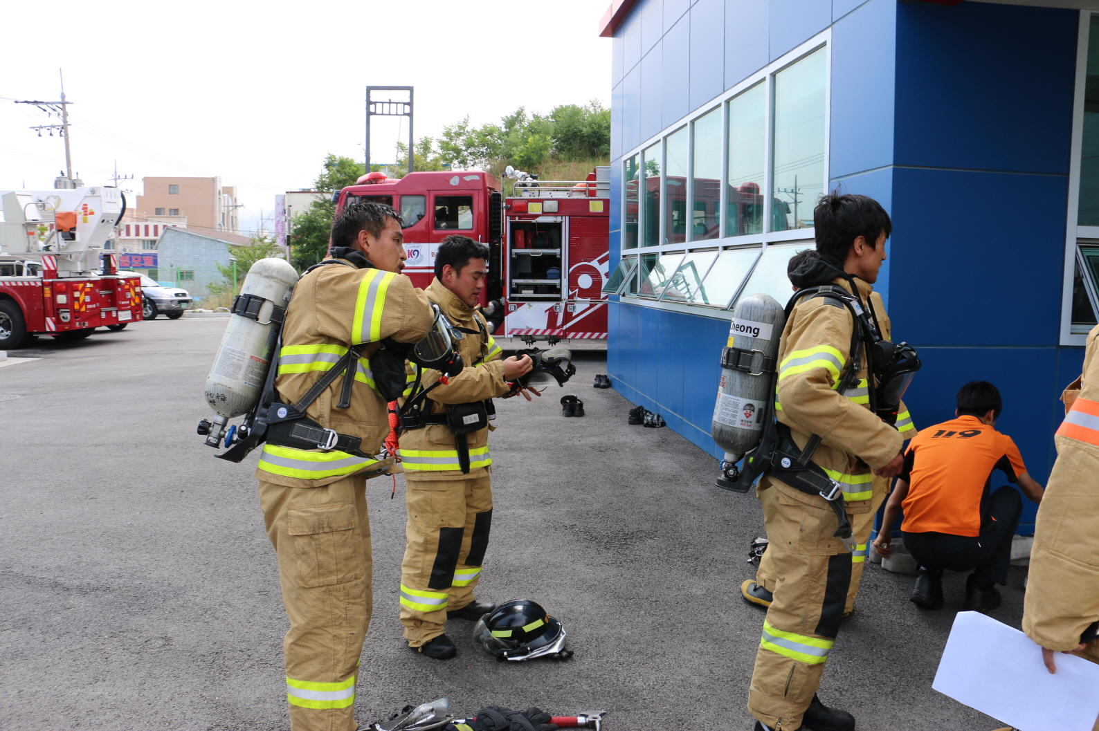 동해소방서(서장 주항중)는 17일(수) 오후 1시 30분 묵호119안전센터 자체 훈련장에서 현장대응부서 소방공무원 33명이 참여한 가운데 실재화재현장대응에 만전을 기하고자 2분기 실물화재진압 및 인명구조훈련을 실시했다.