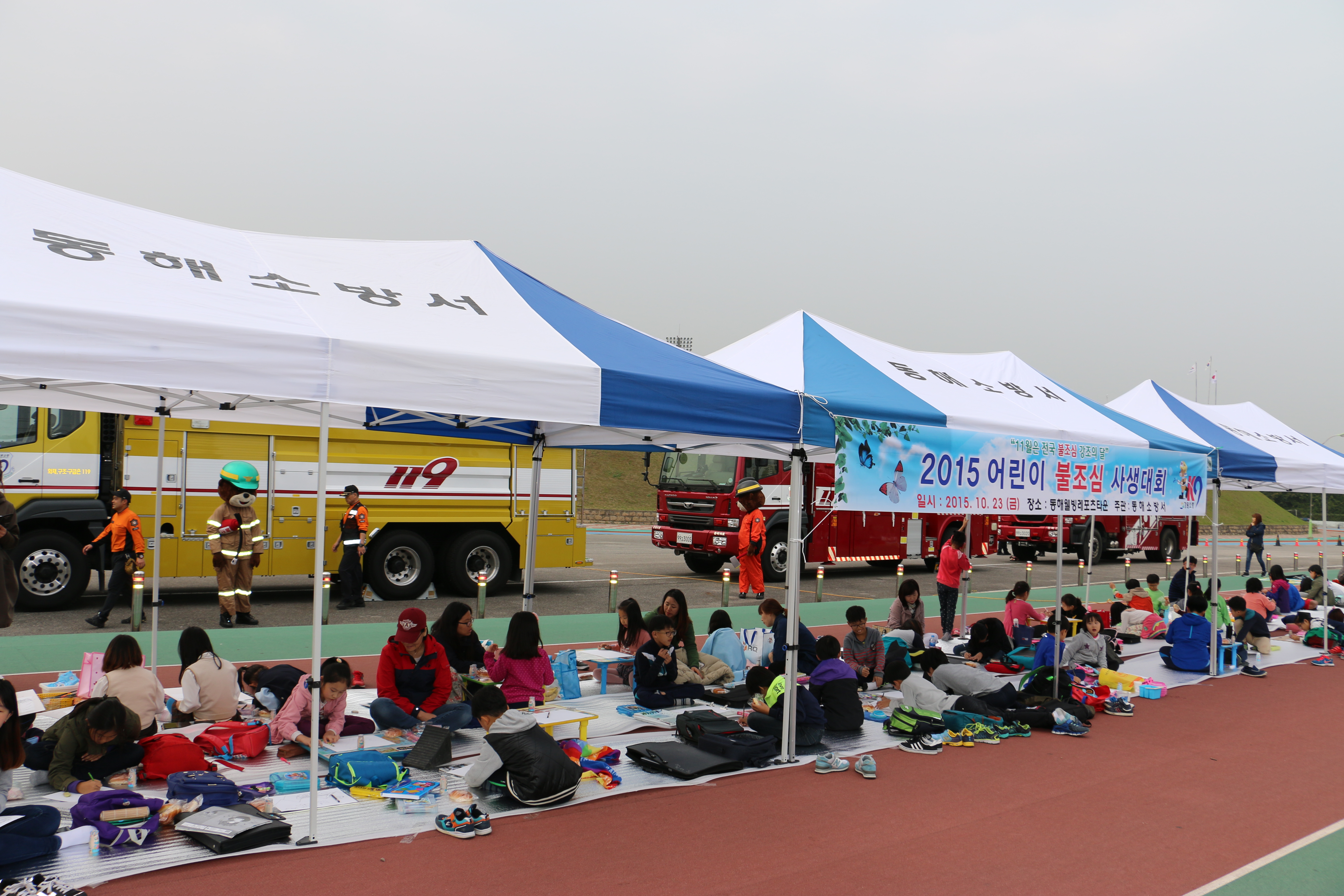 동해소방서(서장 주항중)는 지난 23일(금) 오후 2시 동해웰빙레포츠타운 종합경기장 일원에서 관내 초등학생이 200여명이 참여한 가운데 소방장비, 소방활동, 소방안전체험 등과 관련된 주제를 가지고 “2015 어린이 불조심 사생대회”를 개최했다.