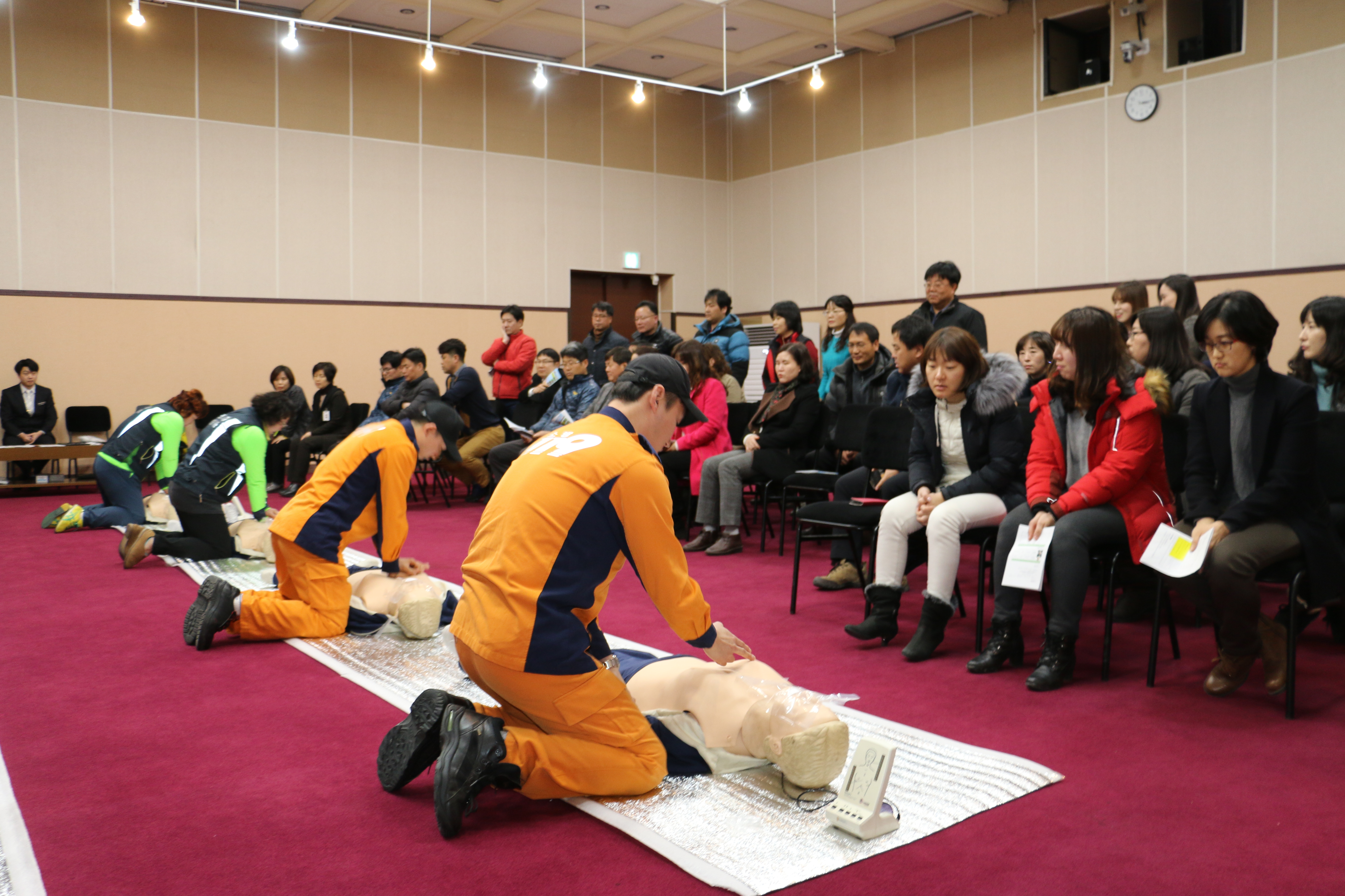또한 교육의 질을 높이기 위해 내달 9일까지 총 14회에 걸쳐 적정한 인원으로 나누어 실시되며 또한 교육효과를 높이기 위해 심폐소생술 이론 및 실습교육 후 자체 평가를 통하여 합격자에게만 교육 이수증을 발급하고 있다.