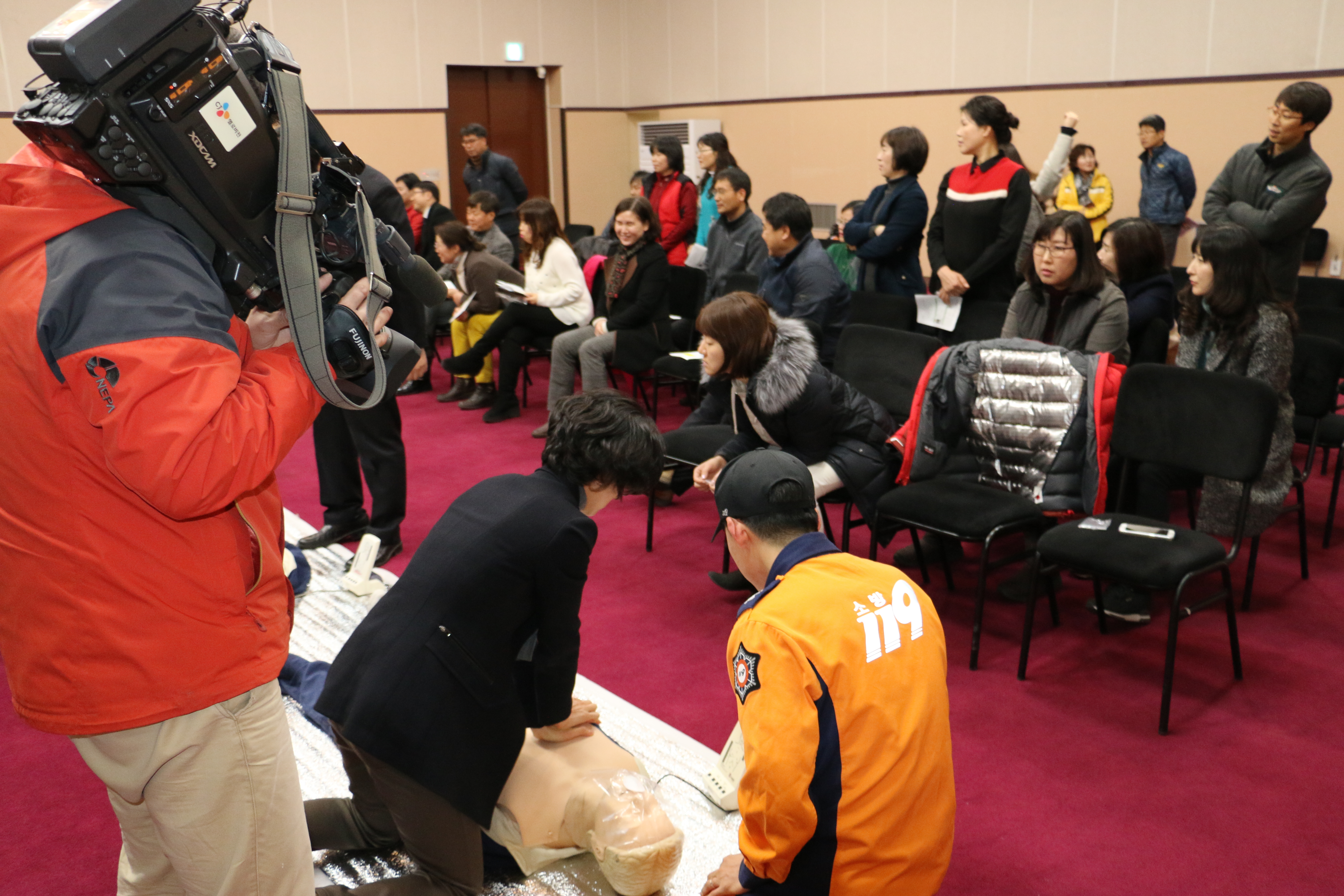 동해소방서(서장 김영조)는 지난 15일부터 동해문화예술회관 소공연장에서 동해시청 전직원 대상으로 매일 40명씩 생명을 구하는 4분의 기적 심폐소생술 보급확대를 위해 응급처치 교육을 지속적으로 실시하고 있다.