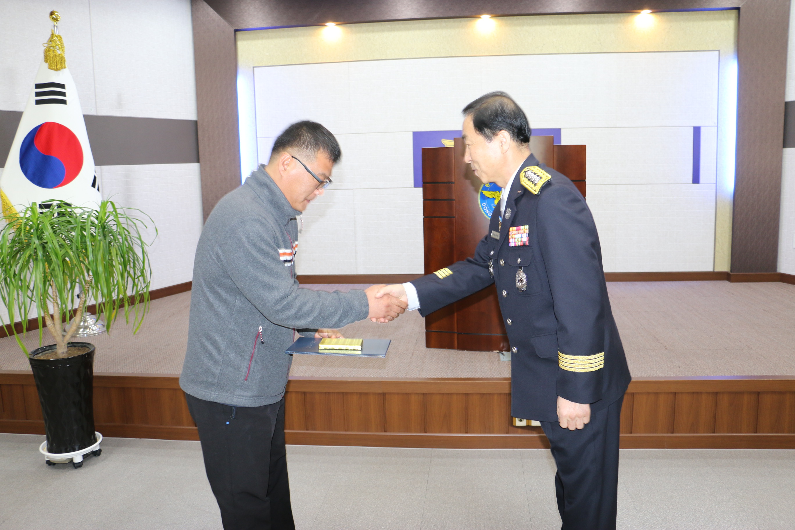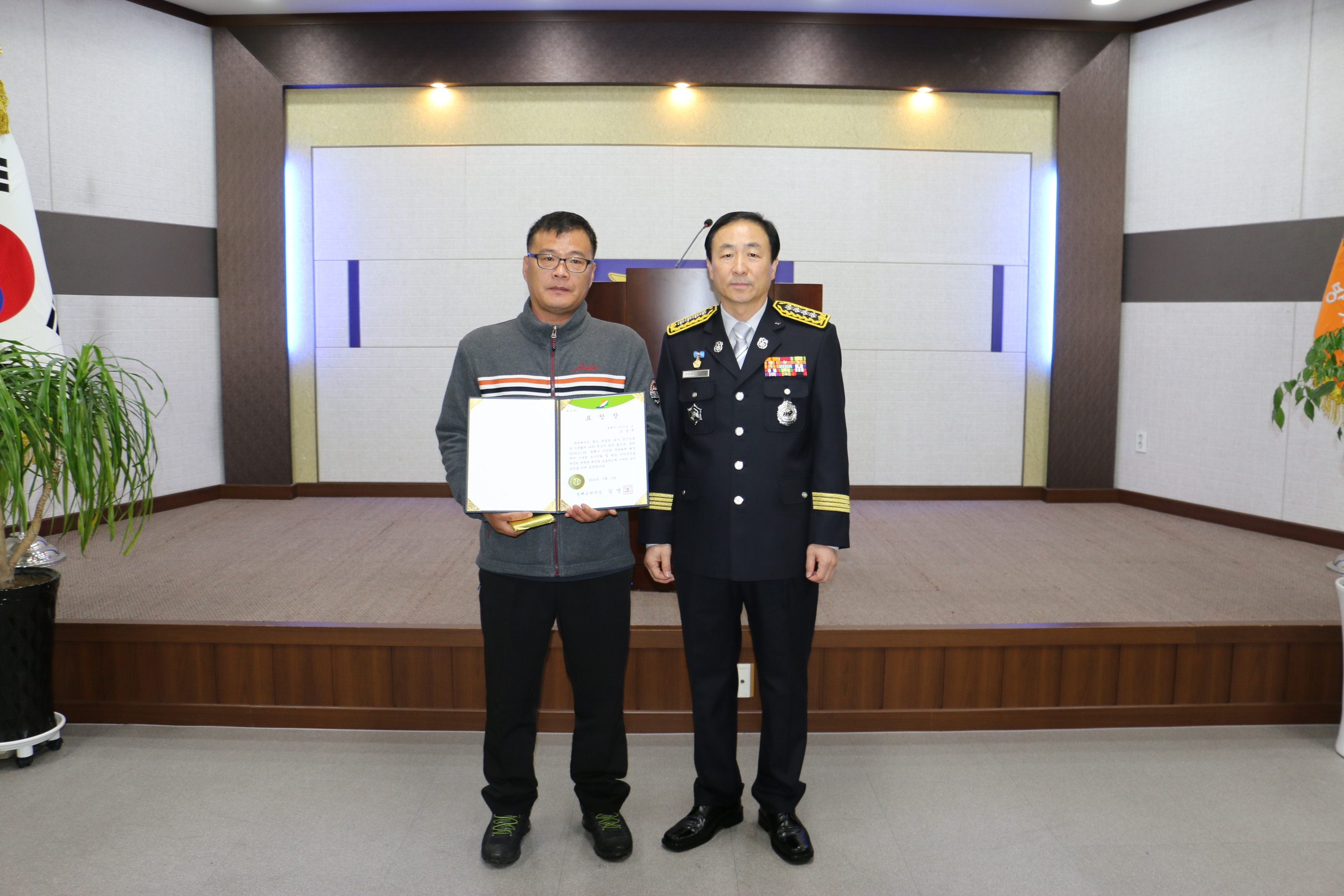 동해소방서(서장 김영조)에서는 8일(화) 오전 9시 본서 대회의실에서 초기화재진압 유공시민 오상국씨에게 동해소방서장 표창장을 수여하였다.