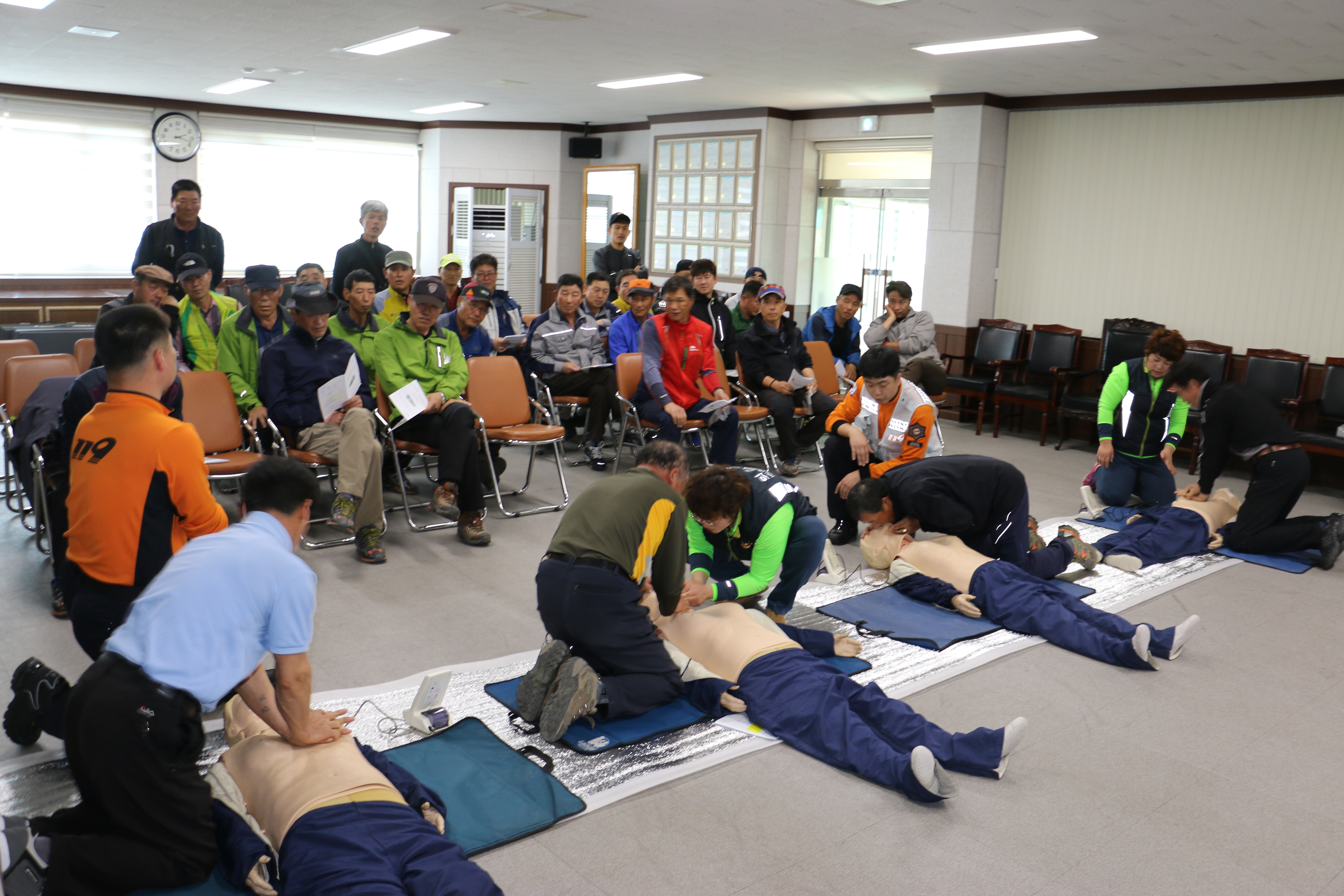 이번 교육은 환경미화원 대상 급작스러운 안전사고를 대비해서 실전에서 제대로 대응 할 수 있도록 하기 위해 3시간에 걸쳐 이론 및 실습교육을 실시하고 마지막 평가에서 합격한 자에 대해서 교육 이수증을 발급했다.