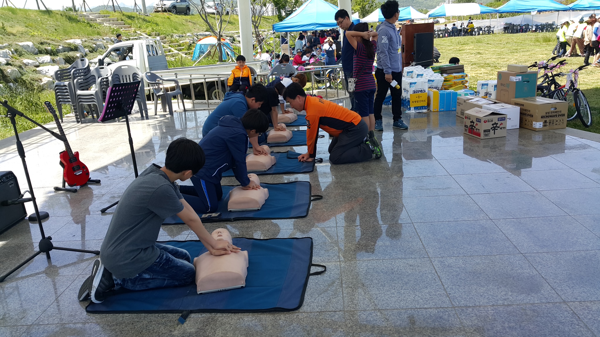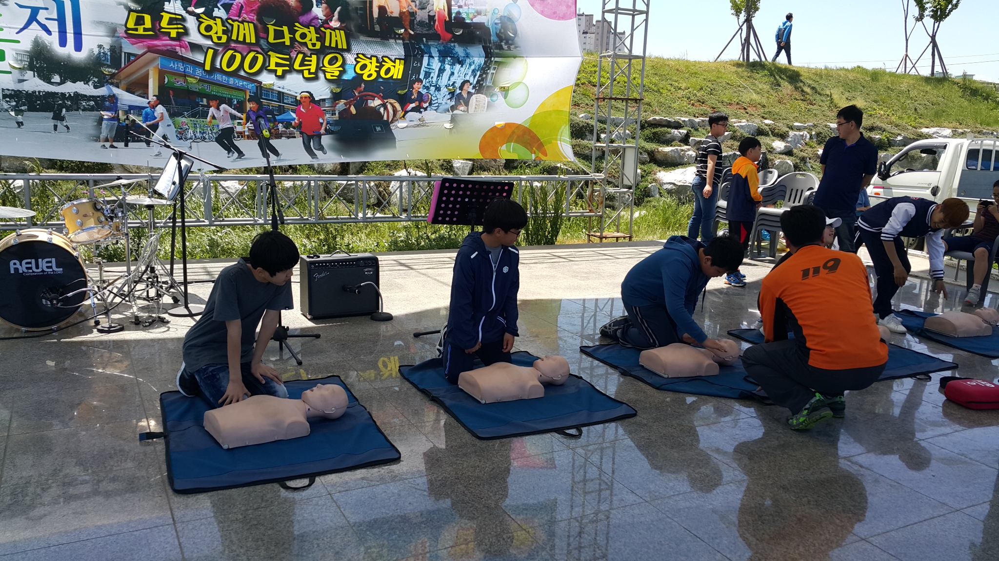지난 일요일 동문 체육대에 같이 참가한 초등학교 재학생에게 심폐소생술 마네킨을 손수 가지고 와서 심폐소생술 방법과 생활 속 안전을 위해 교육해 주신 신재학 소방관님께 감사의 말씀을 드립니다.