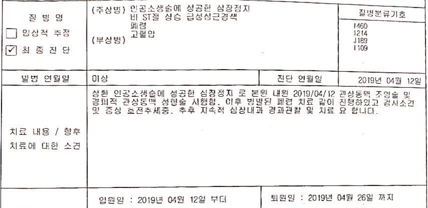 근데 저는 이마저도 감사할 따름입니다. 당시 살아는 계셔도 심정지 기간이 너무 길어서 후유증이 분명 있을거라 생각했어요.