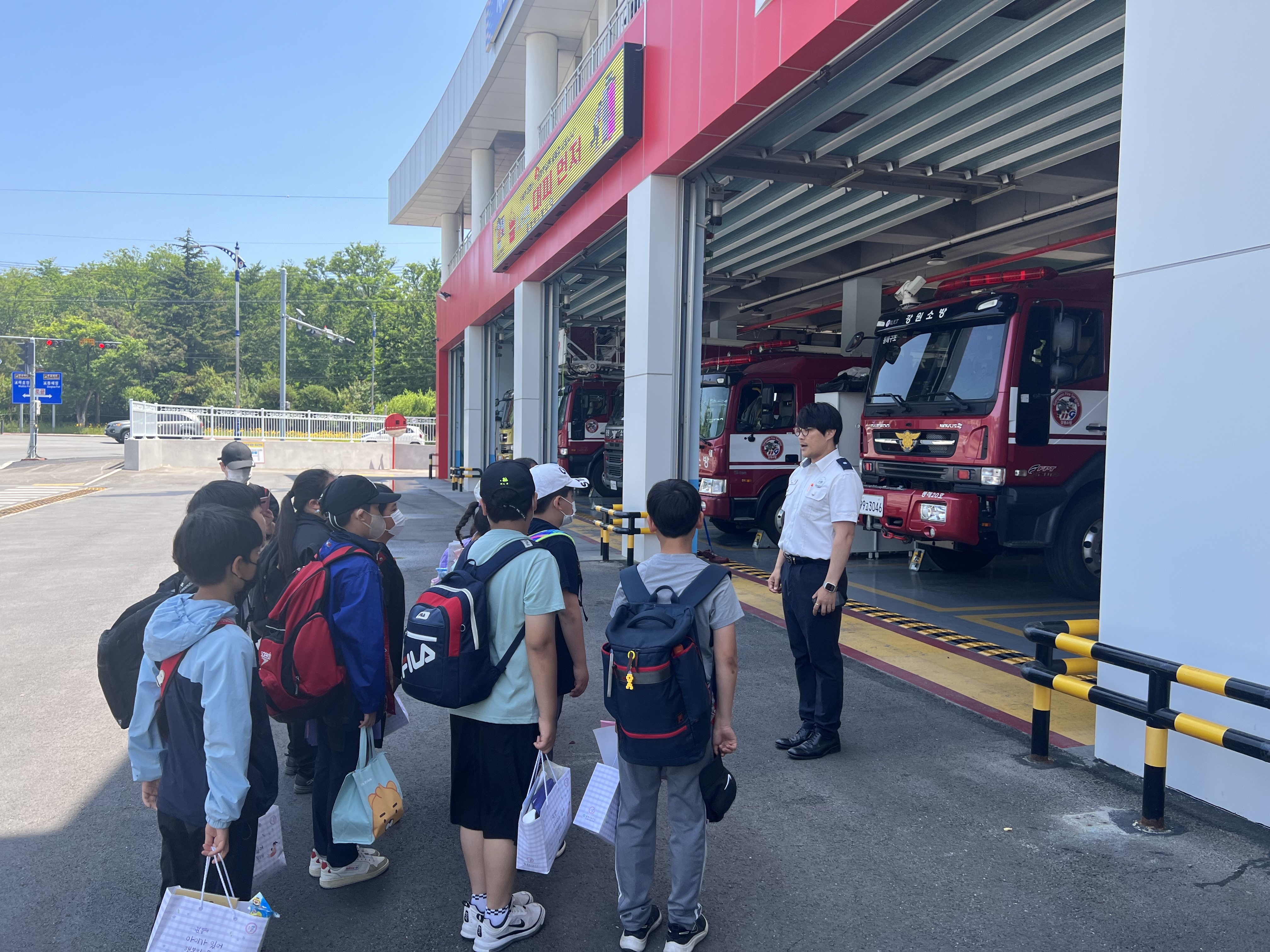 삼화초등학교 친구들을 맞이해준 소방위 김구, 소방교 노현우, 천곡119안전센터 구급대원(소방교 박기성, 소방교 박성준, 소방사 신상근)에게 제가 대신 감사인사 전하겠습니다.
