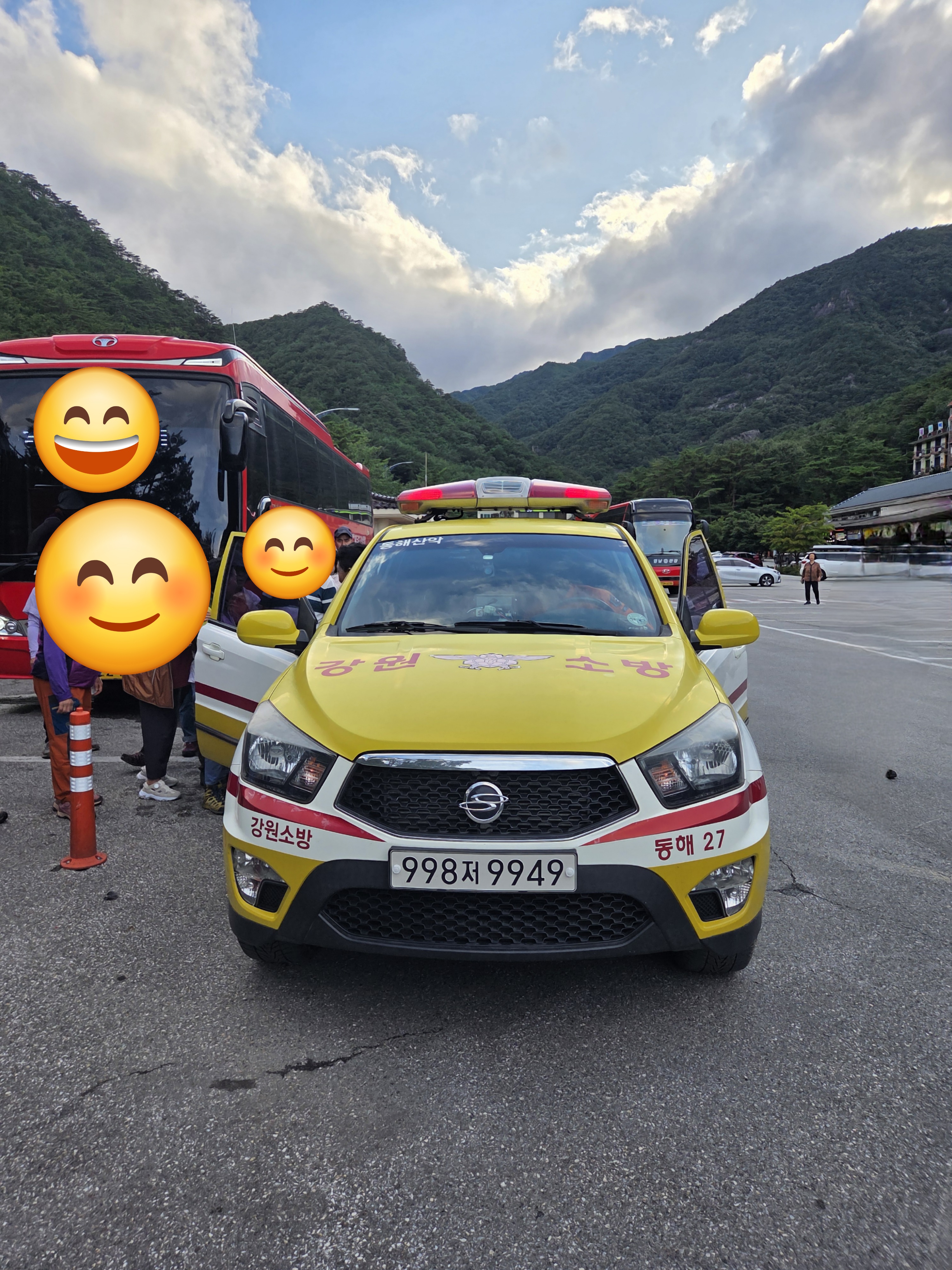 항상 시민을 위하여 고생하시는 119대원님들 그리고 동해시산악구조대원님들께 다시 한번 감사의 인사를 드립니다. 마지막까지 땀흘리고 내려오신 대원님들의 성함을 여쭤보지 못해 그때 운행하셨던 차량사진을 부득이하게 첨부합니다. 대원님들을 칭찬해주세요~^^