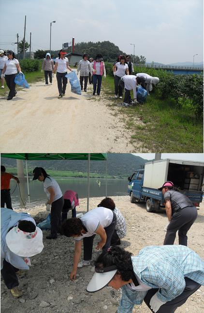 6월 19일 남한강축제 대비하여 남한강변에서 쓰레기줍기등 대청소를 실시하였습니다..