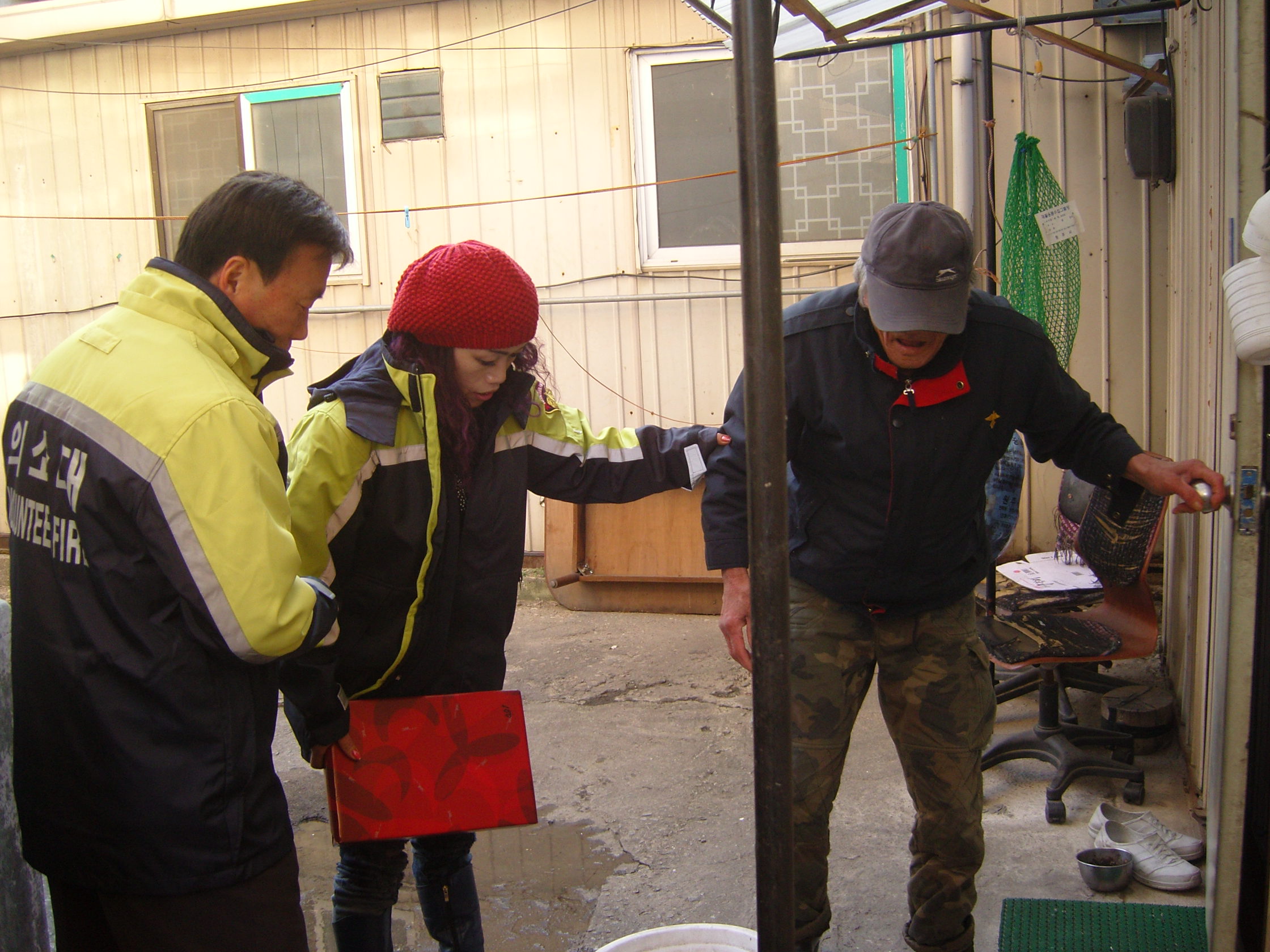 하시고 할머님은 연신 고맙다고 하시고, 다리가 편찮으신 할머님도 들어오라고