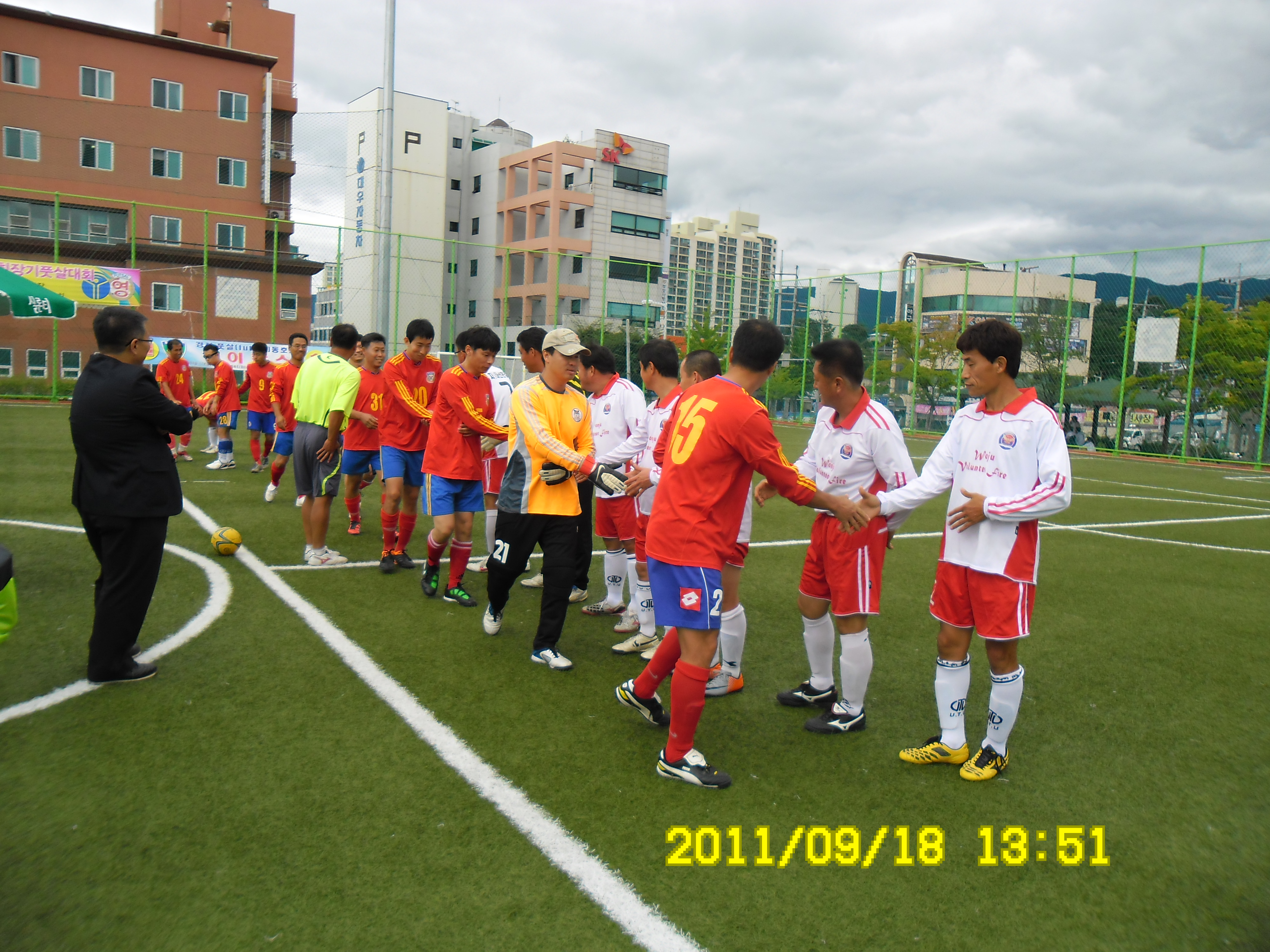 원주의용소방대(대장 조성일)는 9월17-18일 원주풋살구장에서 원주시 풋살대회에 참가하여 6개팀이 참가하여 2무3패의 중간성적으로 거두었습니다. 이어서 응원나온 원주여성의용소방대(대장 이현자)외 대원들과 풋살경기장 주위를 돌며 가을철 불조심 홍보황동도 하였습니다
