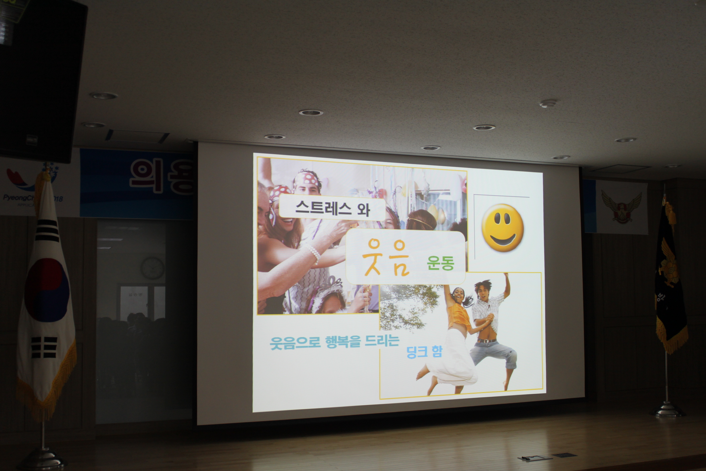 횡성소방서(서장 조근희) 소속 횡성남,여의용소방대는 10월 정기교육시 웃음운동 강사이신 함규식 강사님을 모시고 "스트레스와 웃음운동"에 대한 강의를 받았습니다. 이 번 교육으로 횡성 남, 여 의용소방대는 스트레스가 웃음으로 치료 된다는 소중한 교훈을 터득했습니다.
