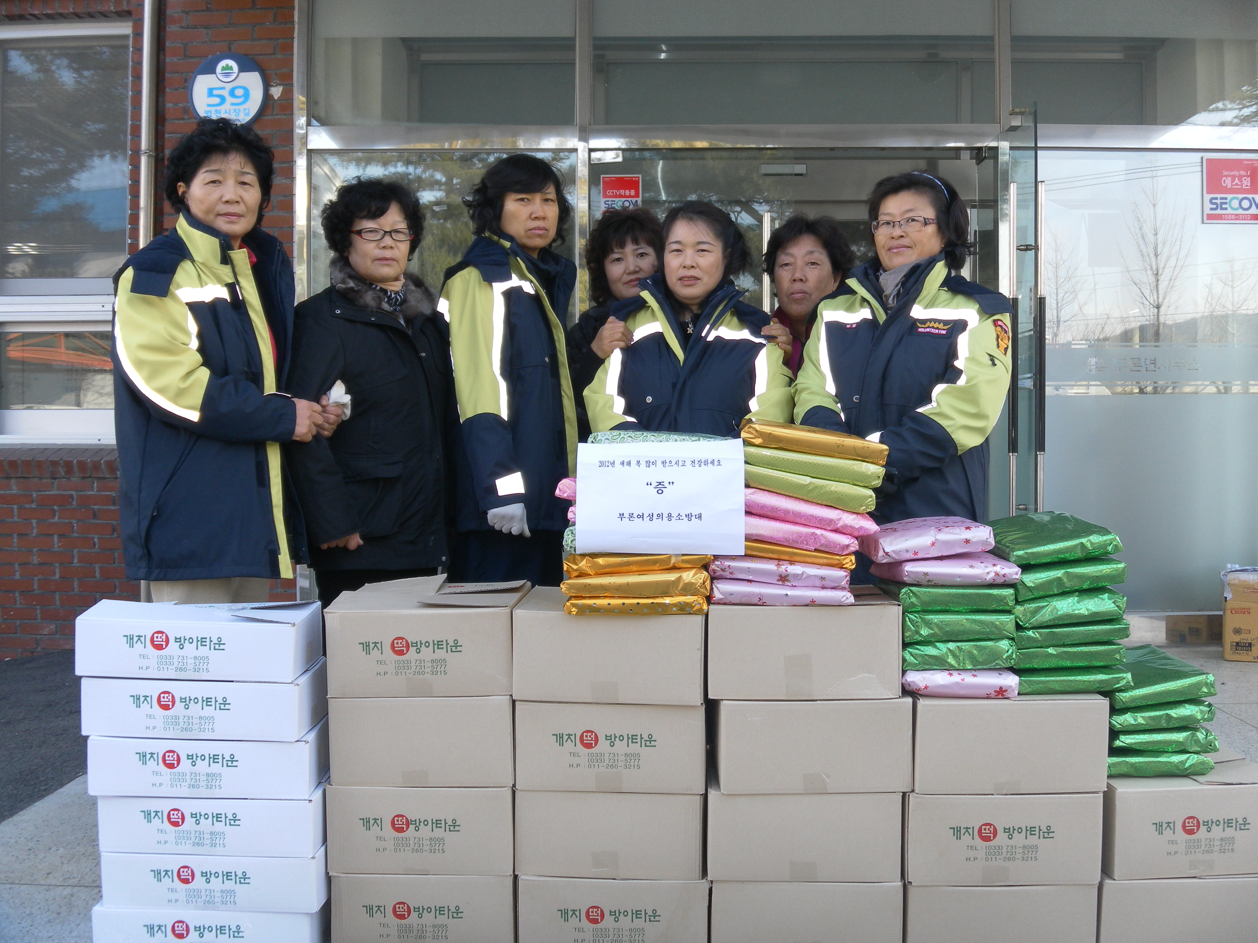부론여성의용소방대(대장 김윤수)에서는 관내 17개경로당을 돌며, 떡배달 및 추운겨울을 따듯하게 지네실수있도록 내복을 전달하였습니다,,,