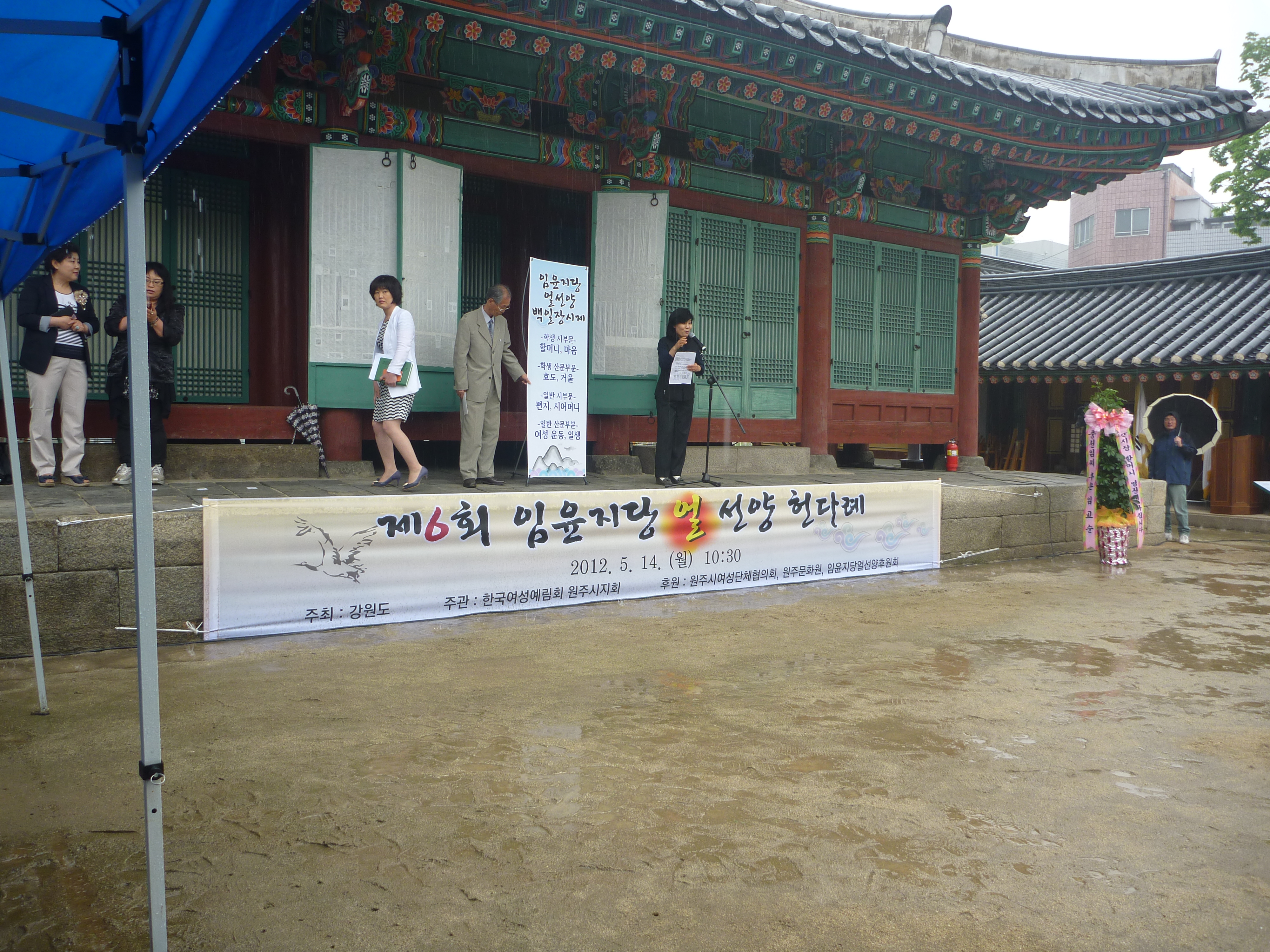 흥업여성대(대장오오석)에서는 2012년 5월14일 월요일 10:30~15:00까지 조선시대의 여성 성리학자 임윤지당의 얼을 기리는 헌다례가 강원감영 선화당 앞에서 열렸다.사회 각계각층에서 활발이 활동하는 파워우면 들이 대거 참석석해 눈길을 끌었다. 오후 14:00부터는 제4회 임윤지당 얼선양 백일장이 진행되었다.비가와서 원활하진 않았지만 많은 분들이 참석해주셨다.백일장에는 학생과 일반인 150여명이 참여해 주었다.