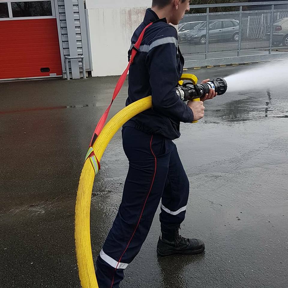 프랑스의 한 소방관이 방수 중 뒤쪽 처지는 부분의 호스무게로 힘이 드는 것을 보완하는 방법을 개인 페이스북을 통해 선보였다. 방법은 단순하다. 방수하는 대원에게서 벗어나는 아래로 처지는 호스를 슬링의 한쪽으로 잡고 다른 한 쪽을 대원의 앞쪽 어깨에 거는 것이다.