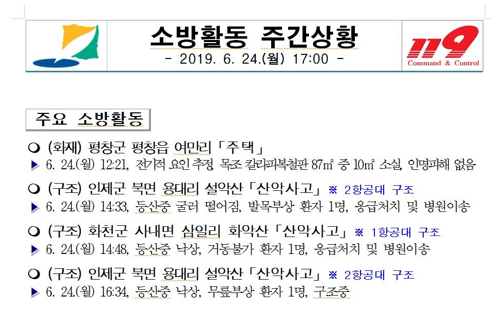 소방활동 주간상황(6. 24. 월) 17:00