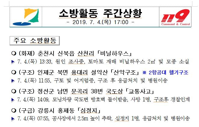 소방활동 주간상황(7. 4. 목) 17:00
