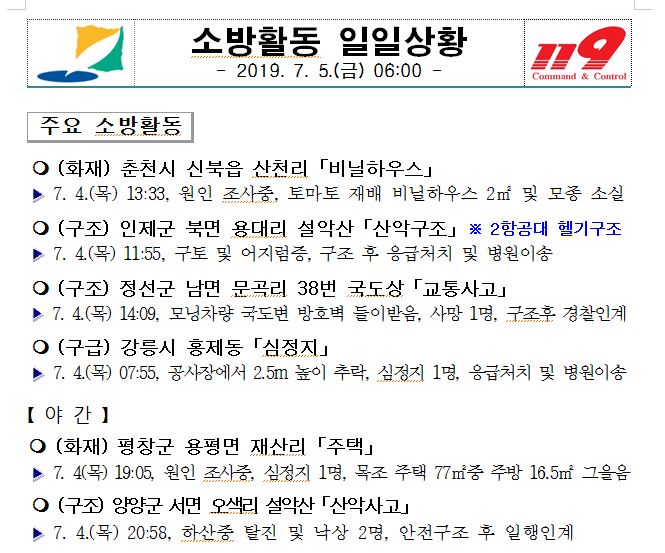 소방활동 일일상황(7. 5. 금) 06:00