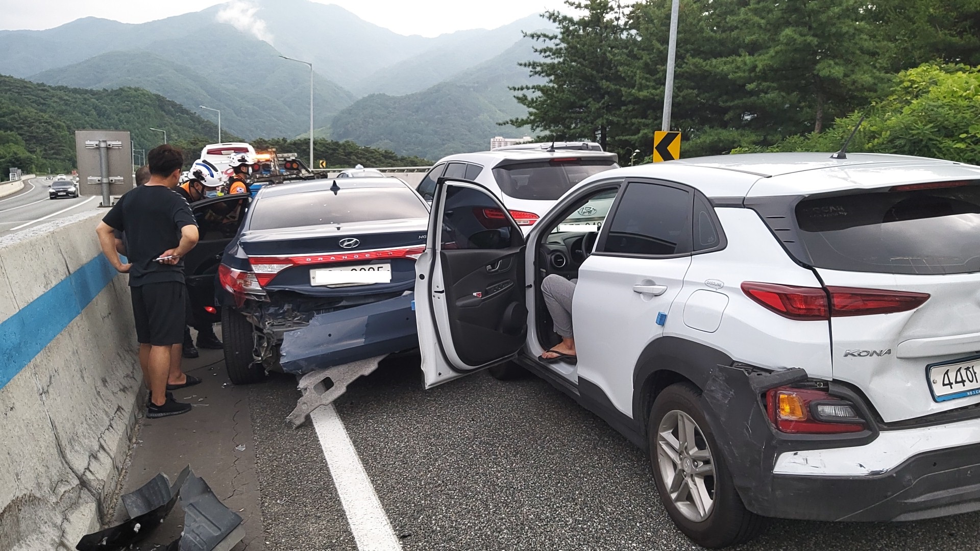 (구급) 원주시 우천면 오원리 영동고속도로 인천방향「교통사고」 7. 14.(일) 16:25, 아반떼 등 4중 추돌, 11명중 경상자 2명 응급처치 및 병원이송중 (원주성지병원), 병원이송 외 나머지 경상자 자차 이동 * 사고원인 : 경찰조사중(경찰문의 부탁드립니다.) |