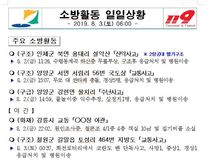 소방활동 일일상황(8. 3. 토) 06:00