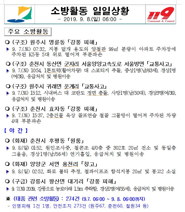 소방활동 일일상황 (9. 8. 일) 06:00