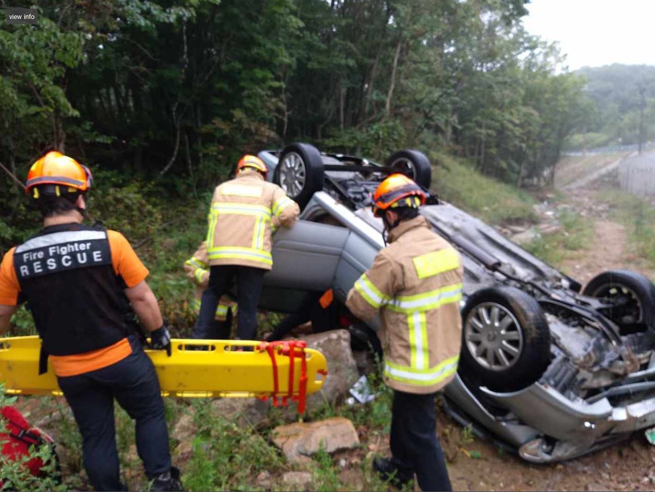 사고내용 : 도로 옆 절벽 3~4미터 아래에 있는 차량을(SM3) 지나가던 운전자가 목격 후 신고함
