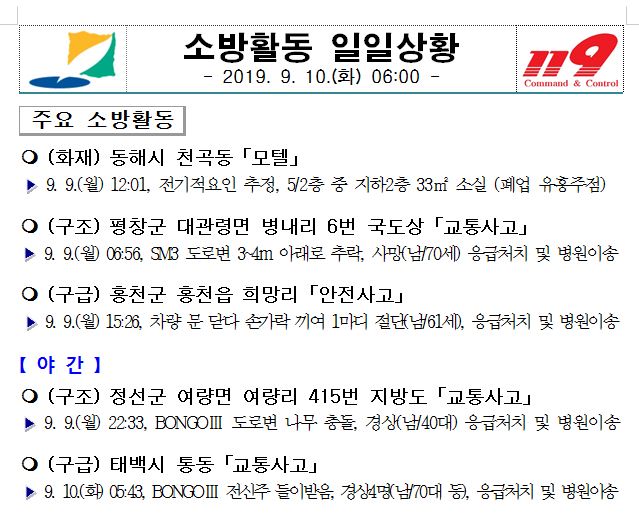 소방활동 일일상황 (9 .10. 화) 06:00