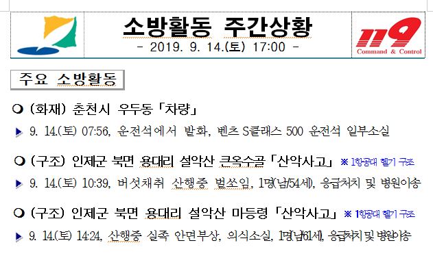소방활동 주간상황 (9. 14. 토) 17:00