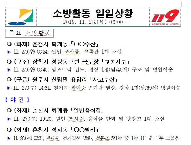 소방활동 일일상황 (11. 28. 목) 06:00