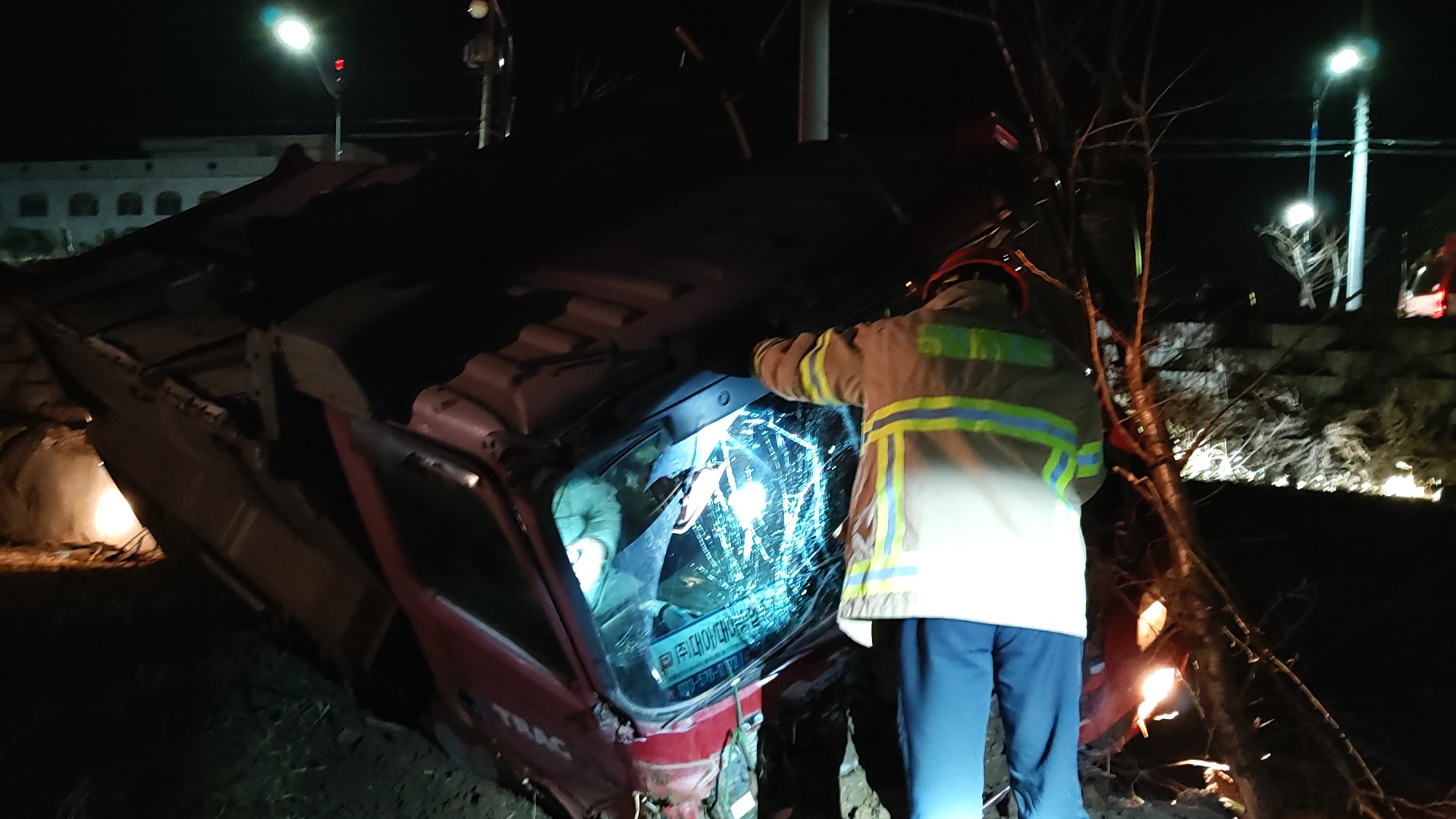 2020. 1. 2.(목) 05:29 삼척시 정상동 트라고 25.5톤트럭 사고