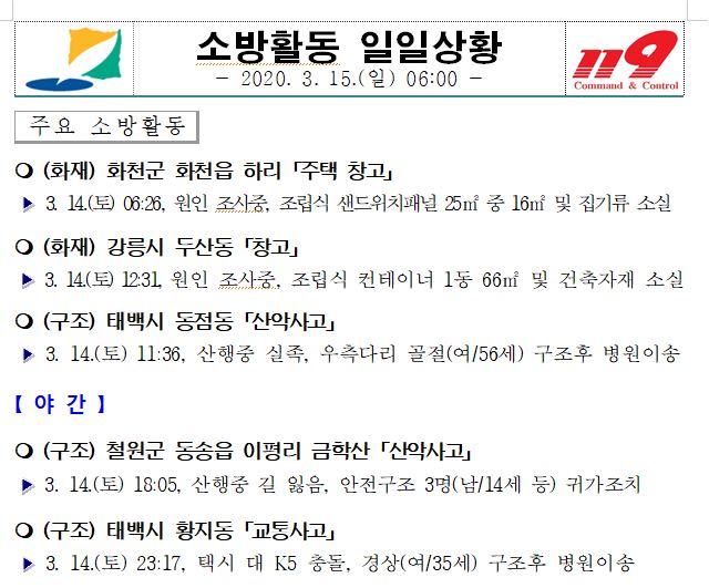 소방활동 일일상황 (3. 15. 일) 06:00