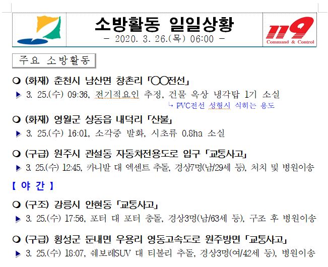 소방활동 일일상황 (3. 26. 목) 06:00