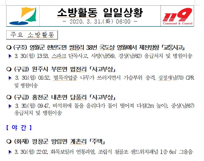 소방활동 일일상황 (3. 31. 화) 06:00