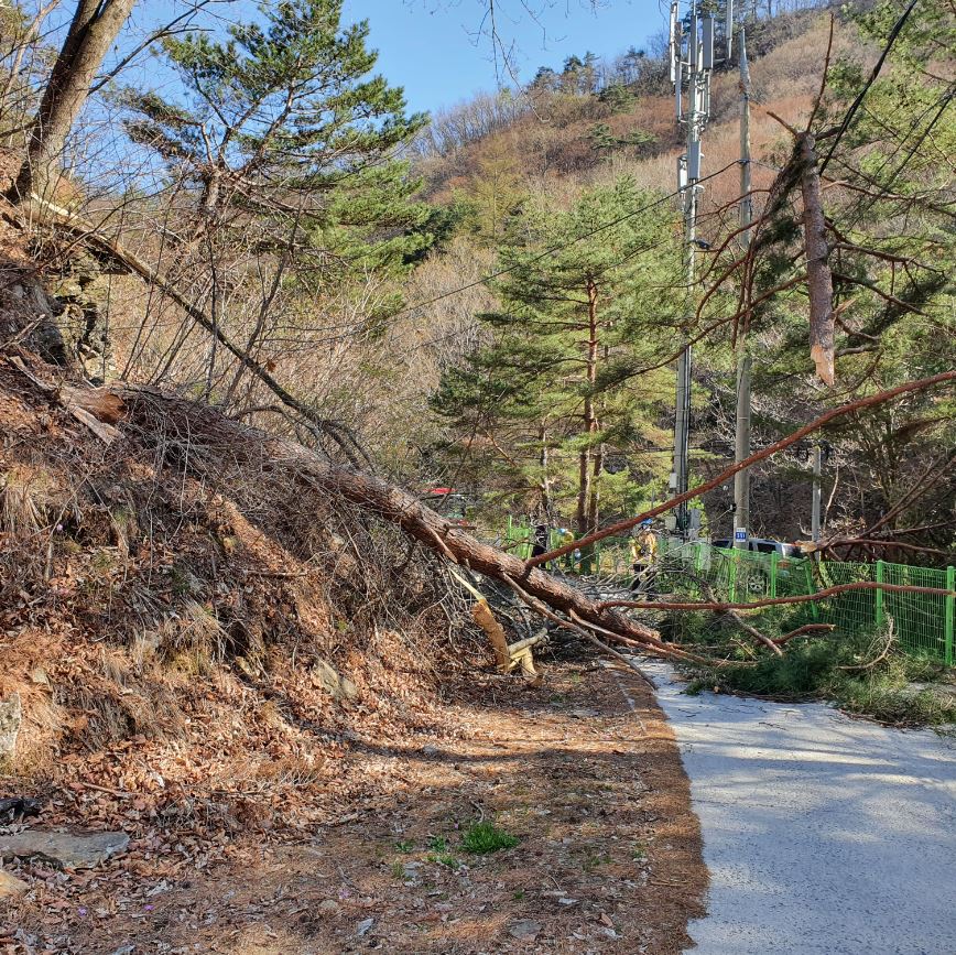 영월군 수주면 도원리 전선에 소나무 걸림.JPG