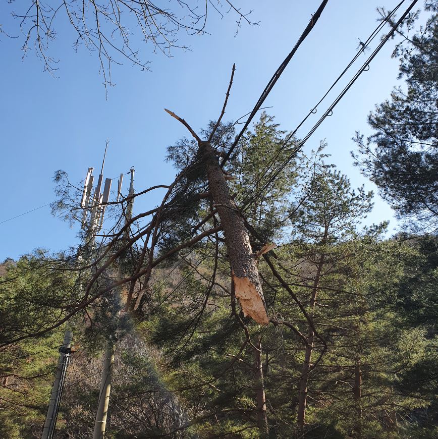 영월군 수주면 도원리 전선에 소나무 걸림 2.JPG