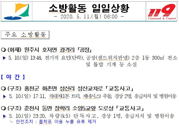 소방활동 일일상황 (5. 11. 월) 06:00