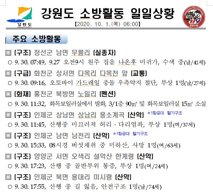 소방활동 일일상황(10. 1. 목) 06:00