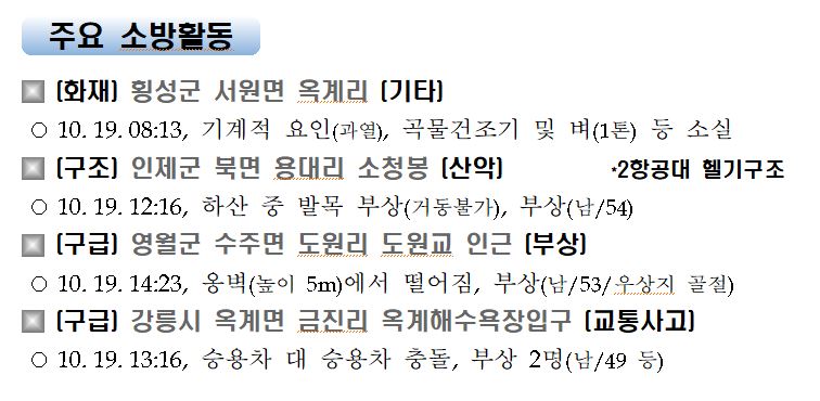 강원도 소방활동 주간상황(10. 19. 월) 17:00