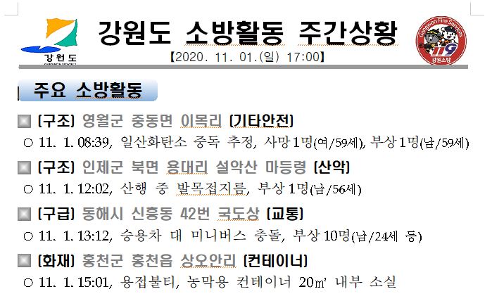 강원도 소방활동 주간상황(11. 1. 일) 17:00