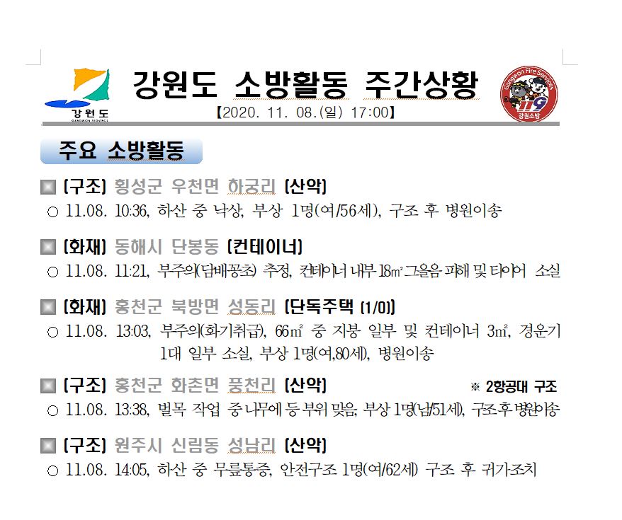 강원도 소방활동 주간상황(11. 08. 일) 17:00