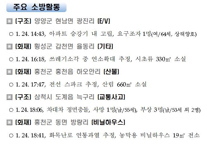 강원도 소방활동 일일상황(1. 25. 월) 06:00