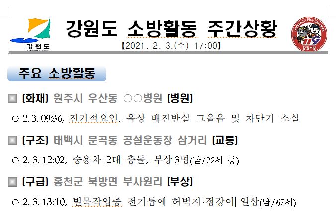 강원도 소방활동 주간상황(2. 3. 수) 17:00